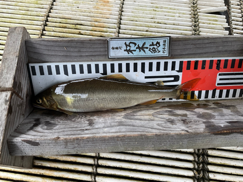 ○昨日の釣果のアユは、「大きいアユで25㎝、チビアユで12㎝」が釣れています。