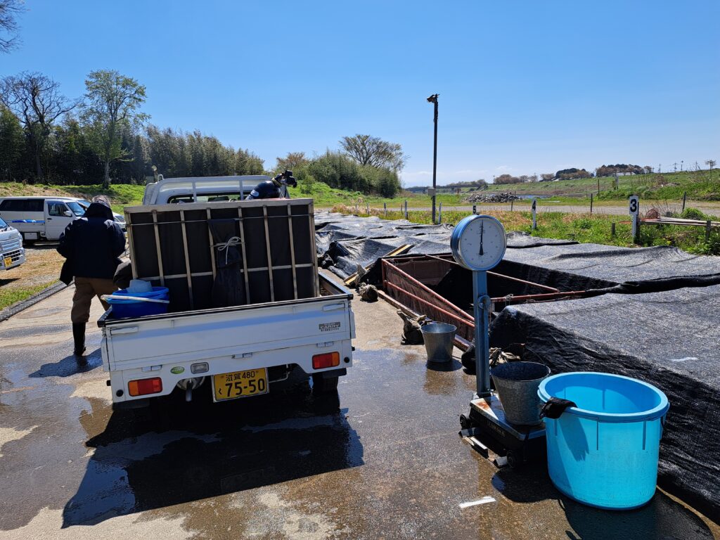 アユ釣りシーズン前に、今年初めての湖産の稚鮎60㎏を放流しました。