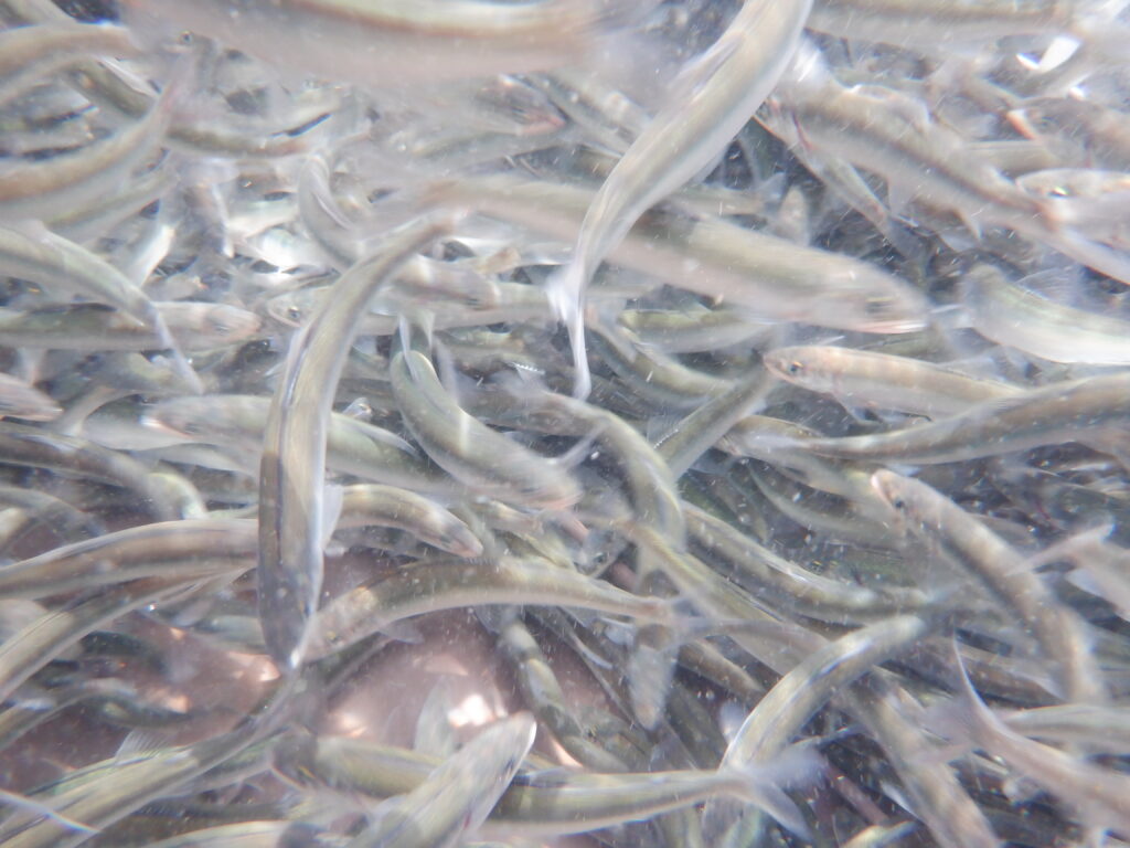 稚鮎は川に放たれると、元気に上流へ泳いで行きました。