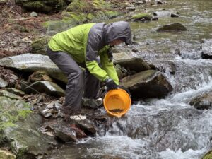 本日、湖産の稚鮎60㎏を放流しました。
